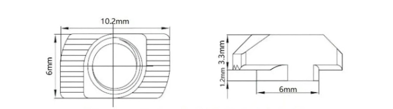 安装: 只需将 T 型螺母放入铝挤压件的槽中,然后拧紧以确保牢固固定。