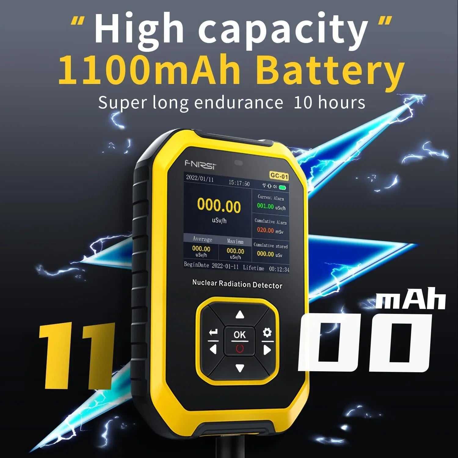 无论您是核工业的专业人士、研究人员,还是对监测环境辐射水平感兴趣的人,FNIRSI GC-01 都能提供您所需的可靠性和精确度。其可调的警报阈值允许您根据具体需求设置灵敏度,确保您能及时收到辐射水平任何显著变化的警报。